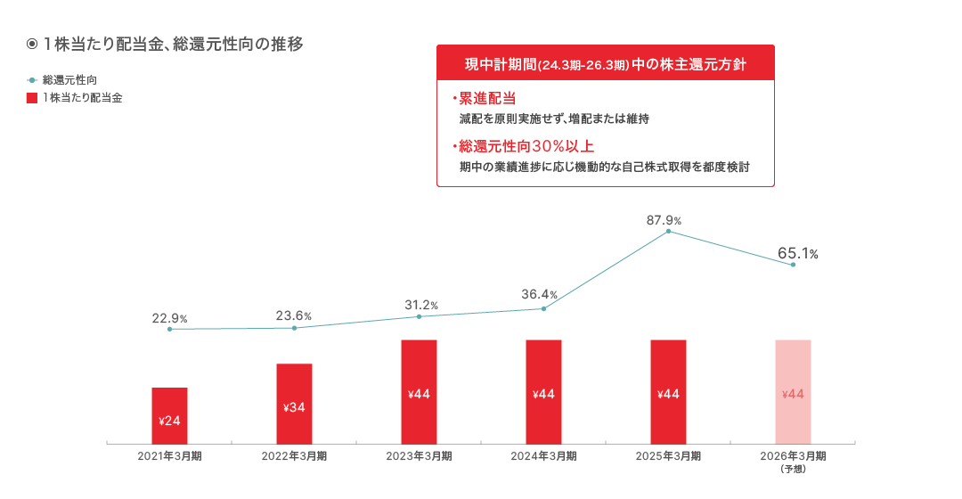 当社グループの重視する経営指標は、売上収益、営業利益、売上高営業利益率としていましたが、2024年5月13日公表の「中期経営計画(WILL-being 2026)の修正に関するお知らせ」に記載の通り、本中計で掲げていた2026年3月期の業績目標である、売上収益、営業利益、売上高営業利益率を取り下げています。KPIは、正社員派遣採用人数/年(建設技術者領域)、正社員派遣定着率(建設技術者領域)、正社員派遣稼働人数(国内Working事業(建設技術者領域を除く))、外国人管理受託人数(国内Working事業)です。